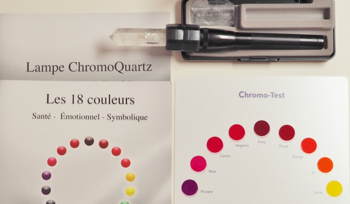 Chromothérapie : thérapie lumineuse, méthode énergétique naturelle, qui vise l’harmonisation physique, psychique et émotionnelle au moyen de lumières colorées projetées sur des zones choisies du corps. Chaque couleur possède une longueur d’onde et des propriétés spécifiques.